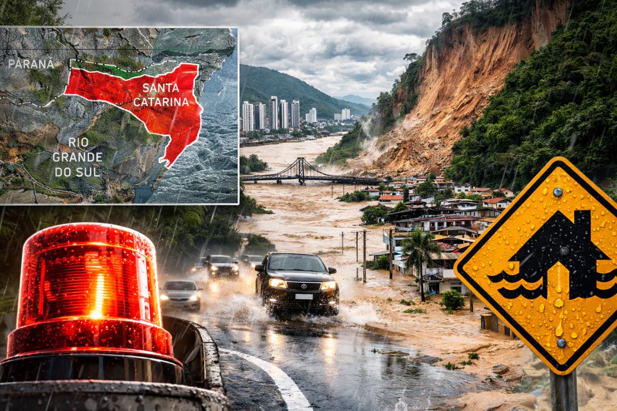 Civil Defense issues red alert for Santa Catarina with rainfall of up to 130 millimeters between Monday and Tuesday and very high risk of flooding, inundations, and landslides in the Itajaí Valley and Greater Florianópolis, which are already feeling the impacts.