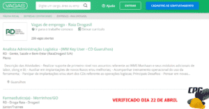 The Raia Drogasil pharmacy chain has 238 job openings available for various positions and regions across the country. RD – Gente Saúde e Bem-estar, a leading company in the Brazilian drugstore market with more than 1,800 stores in 22 Brazilian states, was created in November 2011 from the merger of Raia S.A. and Drogasil S.A. With a gross revenue of R$ 15.5 billion in 2018, RD is the largest drugstore chain in Brazil in terms of revenue and number of stores.