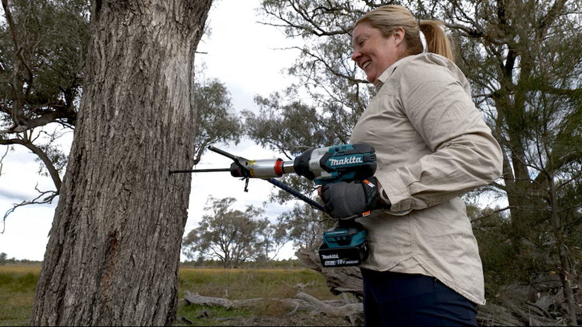 Explaining the procedure, Dr. Taffs detailed that eucalyptus wood is extremely resilient. According to him, the collection is done with a reinforced steel core, the size of a pencil, attached to a drill and inserted into the tree trunk to extract a small sample.