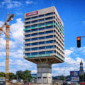 A 68-meter tower, which housed a historic brewery in the heart of Germany’s port, balances on a small base and uses activated core concrete for cooling that reduces the need for air conditioning.