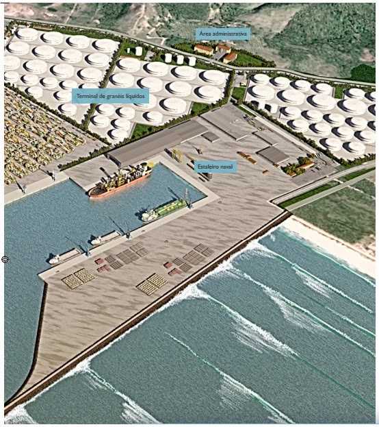 DTA Engenharia’s executive foresees investments of around US$ 2.45 billion in the project, approximately R$ 12.8 billion. The plan is to build four structures, one terminal for liquid bulk, another for natural gas, a third for containers, and a repair shipyard, constituting an operational area that totals 3.5 million m².