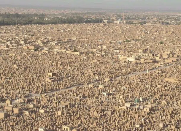 No Vale da Paz, no Iraque, estão enterrados 6 milhões de corpos. Todo ano, cerca de 50 mil novas pessoas são sepultadas lá.