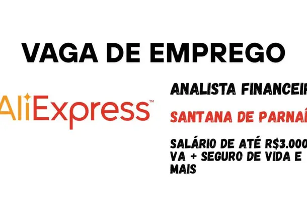 If you have experience in the financial area and are seeking a CLT position with good compensation and benefits, AliExpress Logistics is hiring a Financial Analyst for on-site work in Santana de Parnaíba, SP. Salary between R$ 2,500 and R$ 3,000, with life insurance, meal voucher, and transportation voucher.