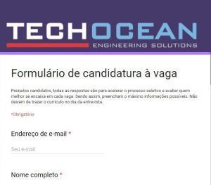 In order to expedite the interviews, Techocean has made a Google Forms questionnaire available for you to fill out, it is not optional, it is mandatory. As we understand, there are no restrictions on experience or demographics, but knowing the nature of the company’s activities, more qualified candidates will have priority in the selection process. You will find all the information there, such as necessary certificates and documents for the interview day. Fill out the form below: