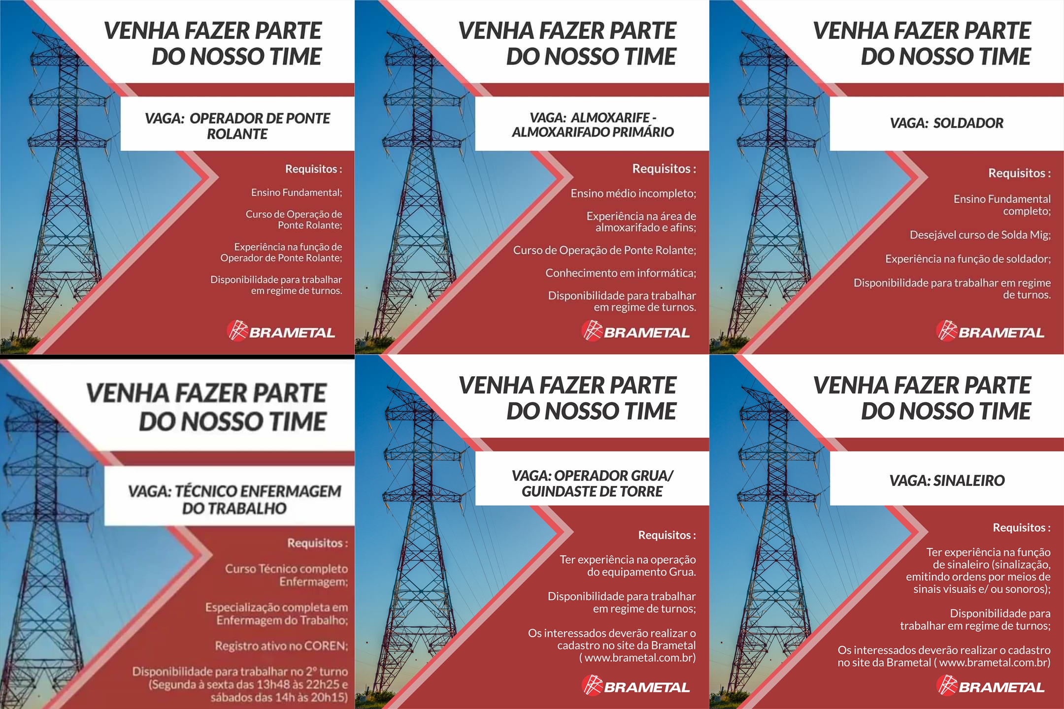 The open positions at Brametal were announced at the end of March and are for the cities of Linhares/ES and Sabará/MG. Therefore, if you are from the region and have the above profession, do not hesitate to continue reading the article to know all the details and requirements of the position to send your resume as quickly as possible and be part of one of the largest factories in the world for the manufacturing of metal structures for power generation and transmission and telecommunications.