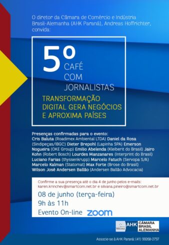 In its 5th edition, adapted to the virtual format, the Brazil-Germany Chamber of Commerce and Industry (AHK Paraná) will hold another Café com Jornalistas on Tuesday, June 8, starting at 9:00 a.m., an annual, exclusive, and free meeting for media professionals.