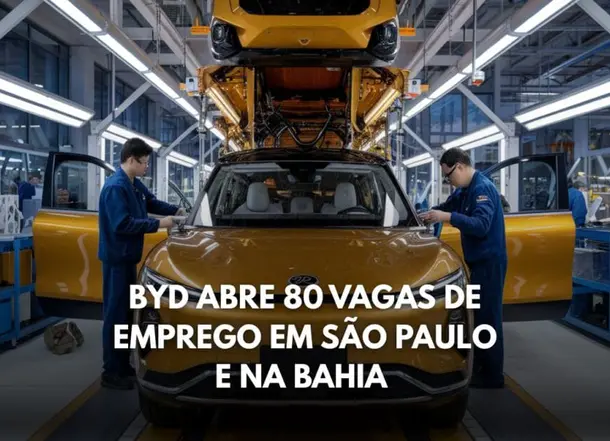 BYD, a Chinese multinational in the high-tech sector, announced the opening of 80 job vacancies in Brazil. The positions at BYD are distributed among the company’s units in São Paulo and Bahia, and are aimed at professionals with high school, technical, and higher education qualifications. Globally recognized for its work in the electric mobility, clean energy, and automotive technology segments, BYD has established itself as one of the leading foreign companies operating in Brazil. The brand’s expansion in the country includes a new industrial plant in Camaçari (BA), which is expected to further boost job generation.