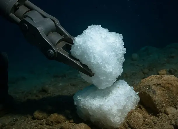 The so-called gas hydrate is a highly energetic mixture of water and methane that forms under extremely high pressures and low temperatures, usually on the ocean floor or in permafrost regions. When heated or depressurized, this ice turns into methane gas, releasing up to 160 cubic meters of gas per cubic meter of the solid substance. This makes it one of the biggest bets to replace fossil fuels in the future.