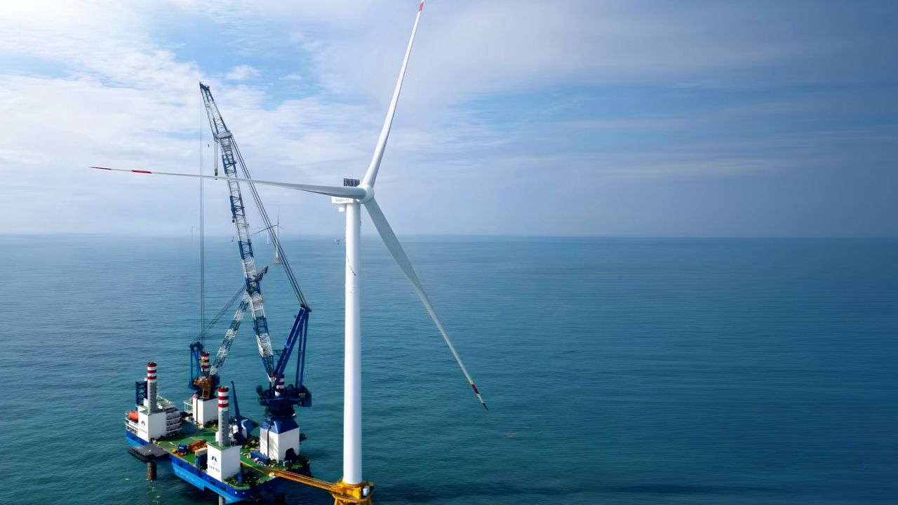 The GWH252-16MW went into operation on July 19. Its innovative design—unlike traditional wind turbines that stop their blades when the wind is too strong—allows real-time adjustment of the blade speed, continuing to generate electricity even with winds exceeding 25 meters per second, such as those caused by Typhoon Haikui last September.