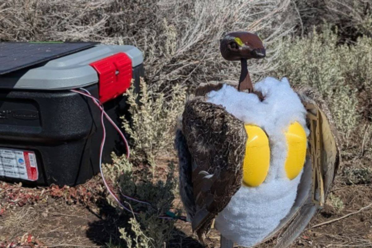 Prairie chicken robots simulate mating dances and sounds in Wyoming to bring the species back to habitats and prevent breeding at Jackson Hole Airport after a decline from 73 to 3.