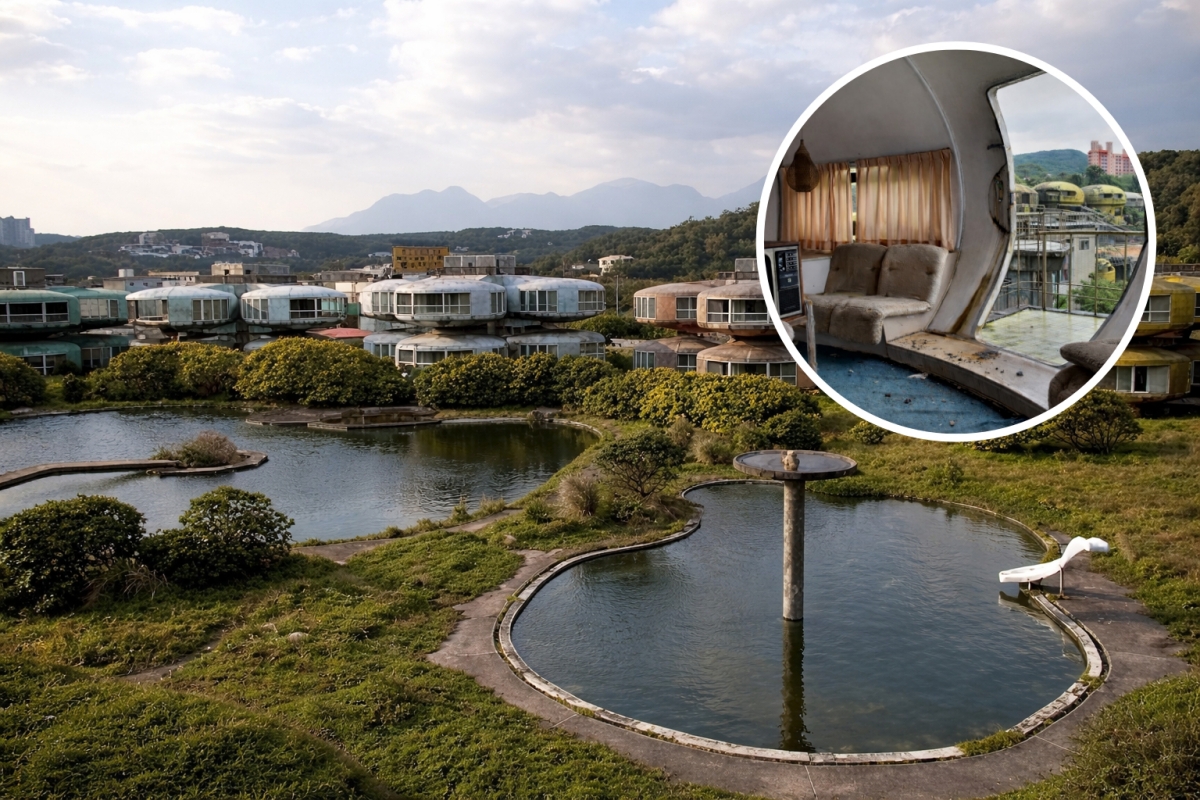 Have you ever imagined arriving at the coastline and finding a megastructure that looks like it landed straight out of a science fiction movie, in the shape of a flying saucer? This is not a cinematic backdrop. It was a real project. The so-called UFO Houses in Taiwan emerged in the 1970s with a bold proposal. To create a futuristic resort that would put the region on the map of Asian architectural innovation.