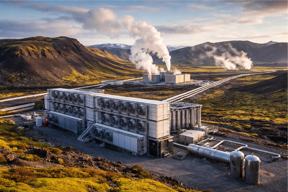The operation takes place near the Hellisheiði geothermal power plant, where an industrial facility removes CO₂ from the air and injects it into deep volcanic formations. The process permanently locks away carbon and could become a new tool in the global strategy against warming.
