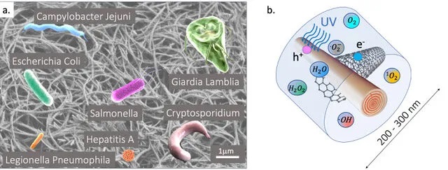 During laboratory tests, scientists discovered that titanium dioxide nanowires alone were already capable of acting as an efficient water filter when exposed to sunlight. When carbon nanotubes were added, it was possible to achieve an extra decontamination layer capable of killing pathogens such as viruses and bacteria.
