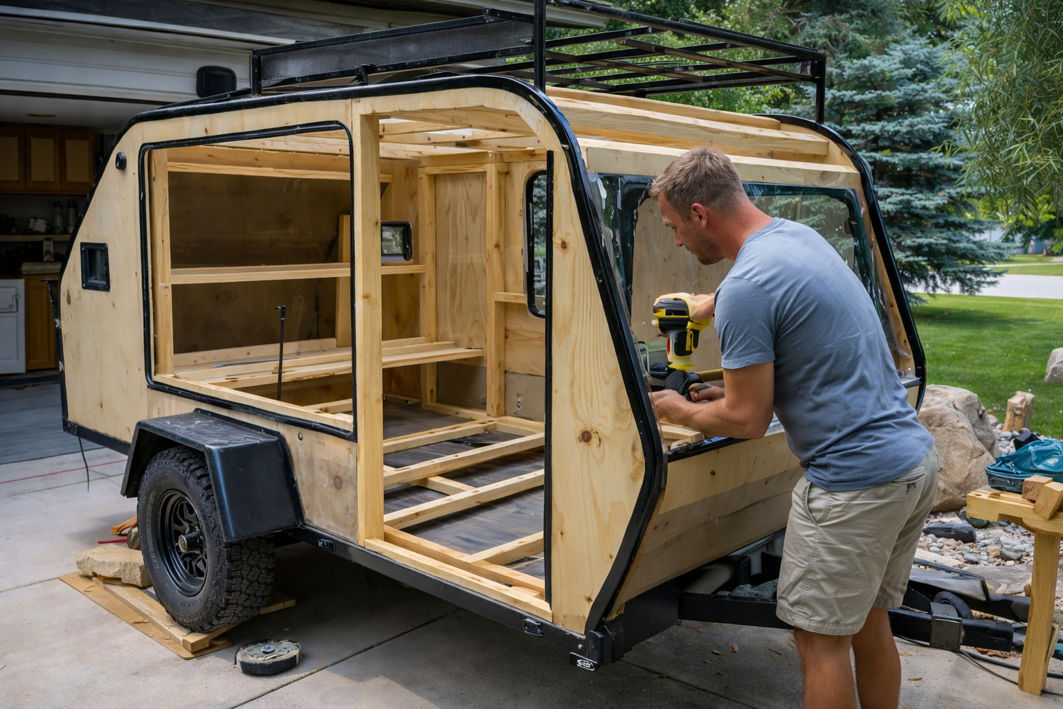 A man renovated a caravan spending less than R$15,000, transforming the vehicle into a small and functional trailer using wood, wheels, metal plates, and wall installation, and surprises with the perfect result.