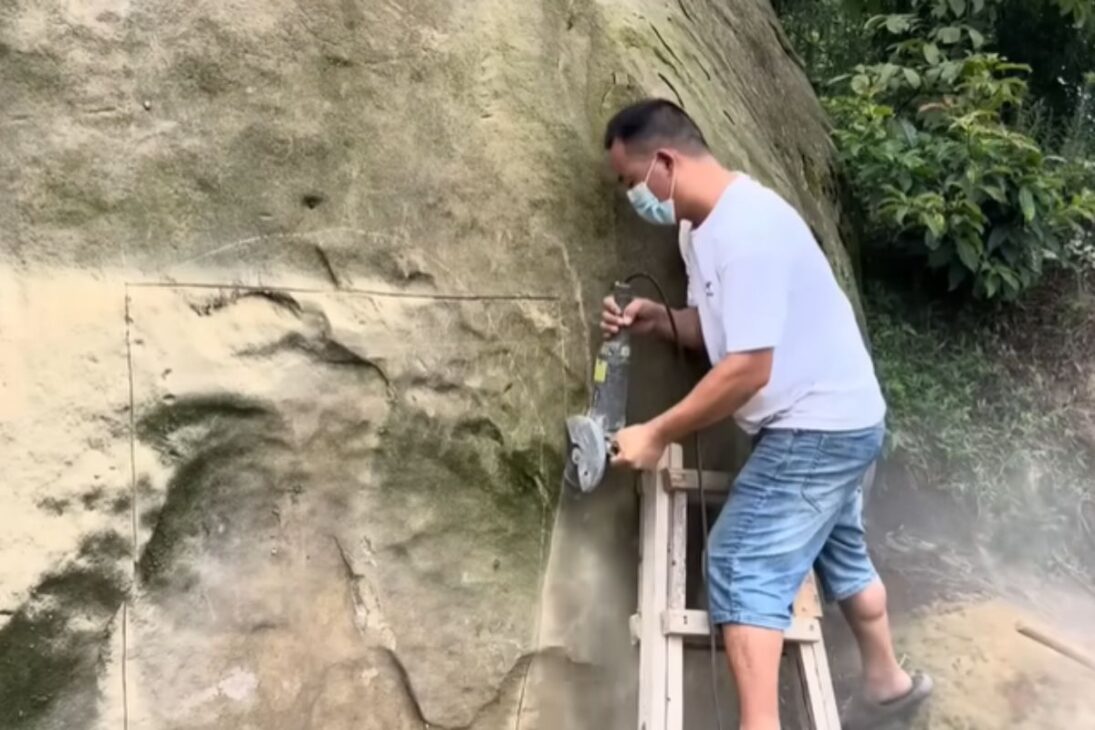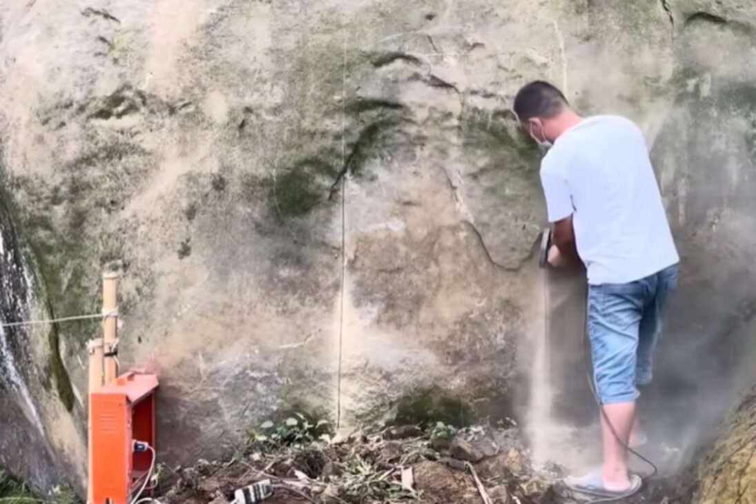 Without resorting to heavy machinery, the builder relied on high-impact electric drills to start dismantling the rock. The choice was not just a matter of scale, but of control. Cylindrical and repeated drillings facilitated the removal of smaller blocks, making the advancement of the house more manageable and less aggressive to the immediate surroundings. Instead of breaking everything at once, the method allowed the stone to be overcome in stages.