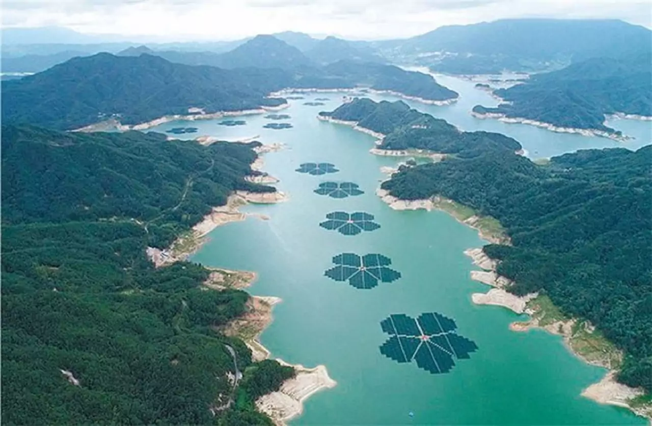 South Korea highlighted the inauguration of a floating solar farm that, in the eyes of the public and everyone who has seen its structure, looks like a huge piece of outdoor art. In the floating solar farm, about 92,000 solar panels unite in 17 blocks shaped like giant cherry blossoms. The solar panels were installed in a 20-km-long reservoir in the city of Hapcheon, located in the south of the country.