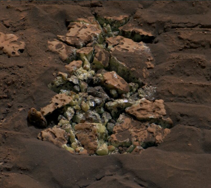 Yellow Crystals Of Brimstone, A Pure Form Of Sulfur, Were Found Inside A Rock Accidentally Broken By The Rover.