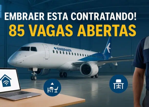 Embraer, one of the world’s largest aircraft manufacturers, has announced the opening of 85 job vacancies in the state of São Paulo. The opportunities are distributed among the company’s units in cities such as São José dos Campos, Gavião Peixoto, and Botucatu, as well as options for remote work.