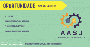 Here are some updated job opportunities published a few days ago by AASJ Maintenance and Offshore Repairs, a company that has operational hubs in the city of Macaé, Rio de Janeiro, and in Aracruz, Espírito Santo. It is important to note that the positions and opportunities available today are for Aracruz, in order to operate in the naval industry, at the EJA shipyard (Estaleiro Jurong Aracruz). Check out the positions and requirements: