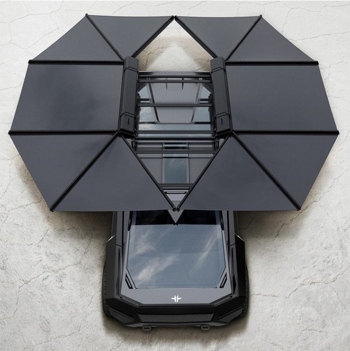The automaker further claims that the solar-powered electric car is designed with the off-road in mind in remote locations, where there are usually no charging stations for electric models, such as deserts, for example. Therefore, just deploy the awning with solar panels to recharge the electric pickup’s batteries.