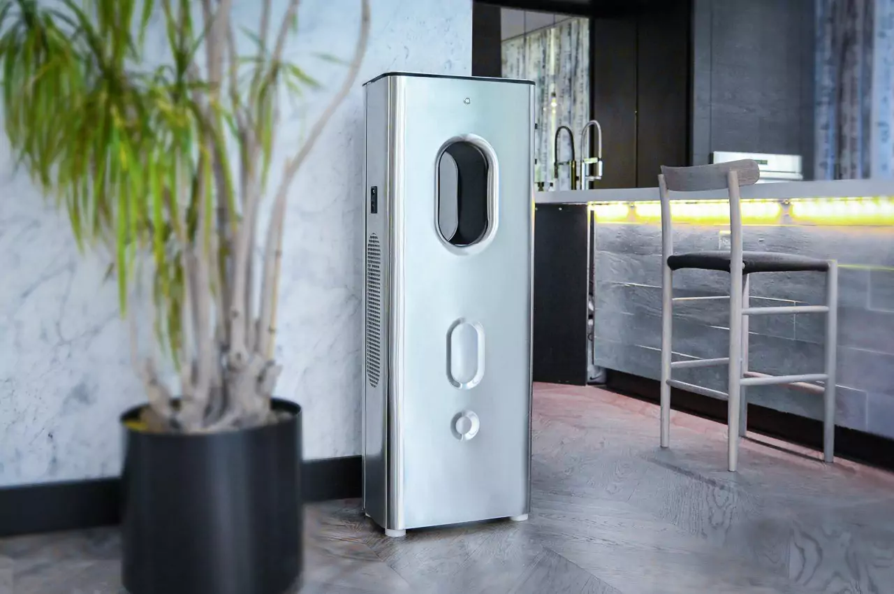 Kara Pure uses a substance similar to silica gel or volcanic rock. The air passes through this substance, extracting the drinking water that is stored in a tank. Thus, the liquid goes through a purification system with several stages where mineralized and ultraviolet light is used for sterilization. Afterward, it is alkalized, passing through an ionizer and a filter that removes any final impurities.