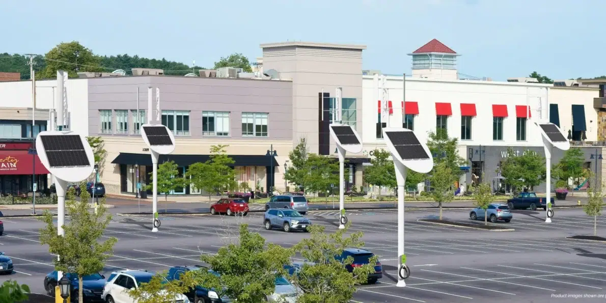 American Company Launches New Line Of Solar-Powered Electric Vehicle Chargers That Can Also Function As Light Poles