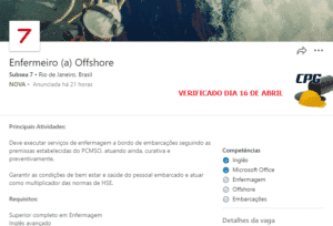 To apply for the Offshore Nurse position at Subsea 7 in Rio de Janeiro, just click here and you will be redirected to the application page. Good luck!