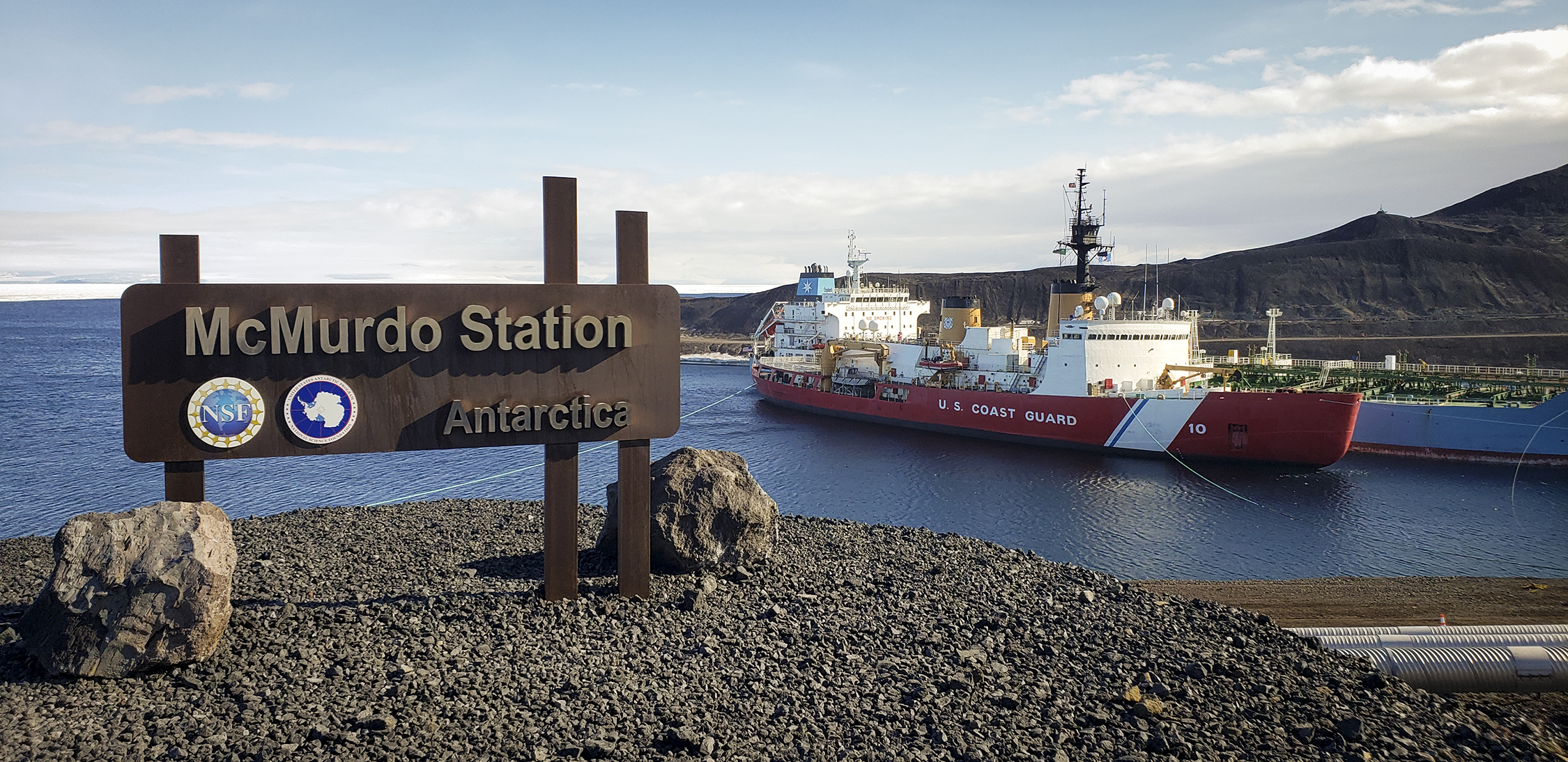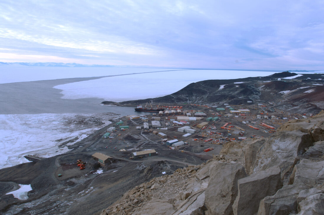 The US Coast Guard icebreakers open a channel through the sea ice of McMurdo Sound so that supply ships can reach Winter Quarters Bay, McMurdo’s port. Additional supplies and personnel arrive via flights from Christchurch, New Zealand, when weather permits.