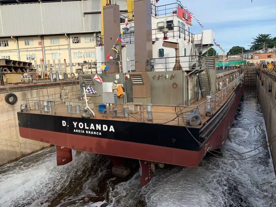 The São Miguel Shipyard, in a ceremony held on Wednesday (07/08), launched another vessel, an important milestone for the naval sector of our country, especially during a phase when shipyards unite against the bill that facilitates the purchase of foreign ships.