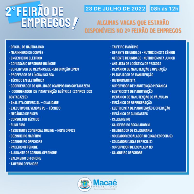 Super Job Fair in Macaé Will Offer More Than 1500 Offshore and General Vacancies, City Hall States
