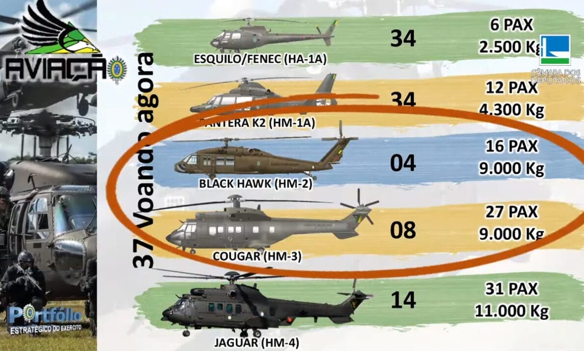 According to the General Officer, this purchase aims to replace the 12 oldest aircraft in the fleet of 94 helicopters from the Brazilian Army Aviation Command (CAvEx). Among the new helicopters of the FAB are eight HM-3 Cougars and four HM-2 Black Hawks, acquired more than two decades ago and reaching the end of their useful life.