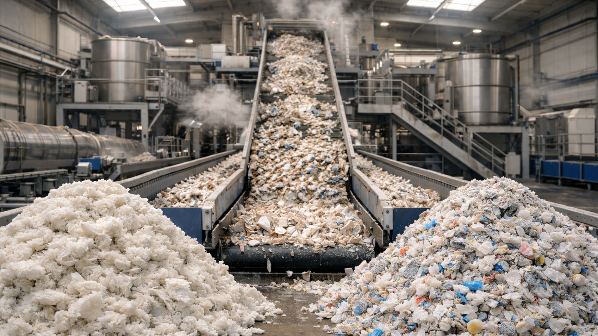 In practice, the material arrives with variations in brands, sizes, and compositions, and still carries different degrees of contamination depending on the source, which increases the pressure for standardization of what enters the factory to ensure predictability of what comes out.
