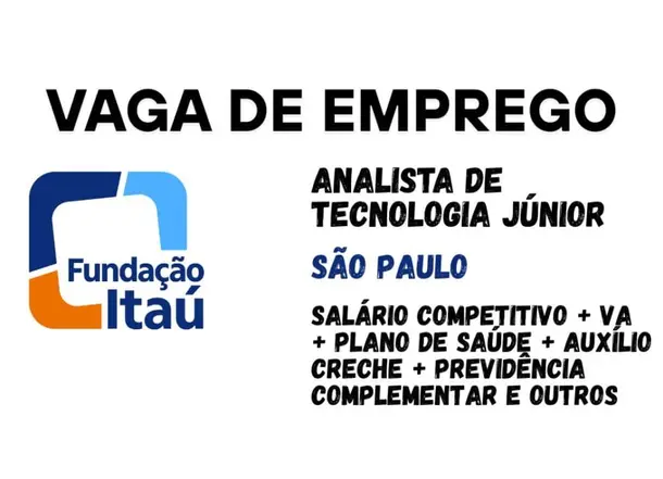 A Fundação Itaú está com vaga aberta para Analista de Tecnologia Júnior em São Paulo, com foco em inovação e projetos sociais. É uma ótima chance pra quem é da área de TI, gosta de aprender e quer trabalhar com propósito!