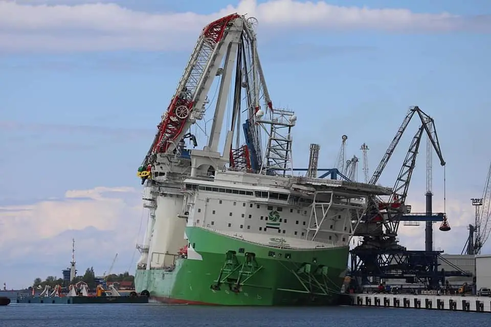 The heavy-lift crane ship HLC 295000 was severely damaged after an accident during a test run on May 2, 2020, at the international port of Rostock, Germany.