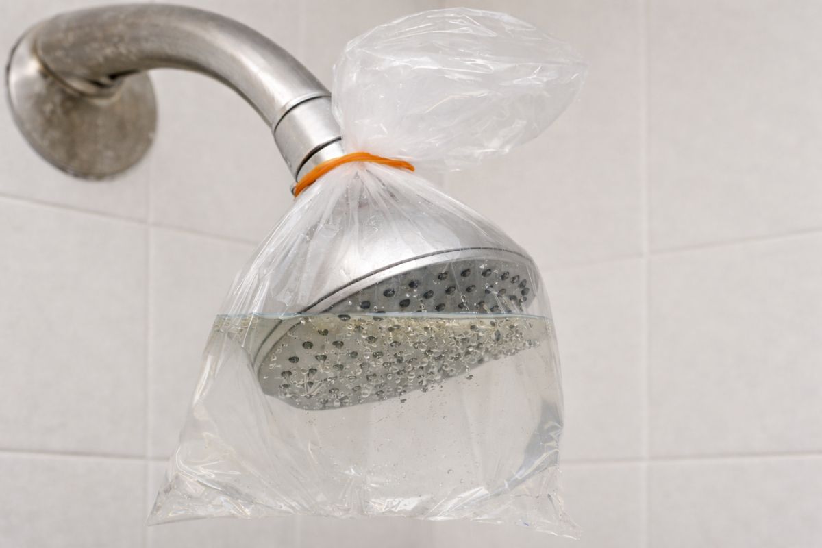 The step-by-step to unclog the shower with vinegar and a plastic bag