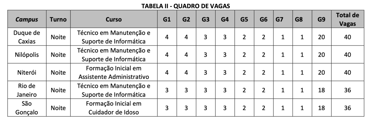 The selection process will be conducted exclusively by Public Drawing, filling a total of 192 vacancies at IFRJ campuses. The selection will only be valid for entry in the first semester of the 2024 academic year. It is important to emphasize that the selection of candidates will be exclusively valid for this period.