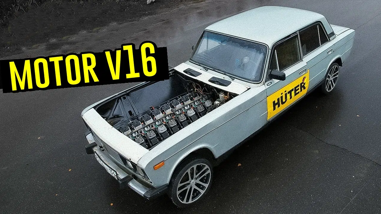 The task of installing the engine into the Lada required more than technical skills: the mechanics had to cut the front of the vehicle, extend it, and weld it back together to accommodate the 51-inch-long engine. The result is an unusual and fascinating appearance, as the car was kept without a hood, showcasing the makeshift engine at the front.