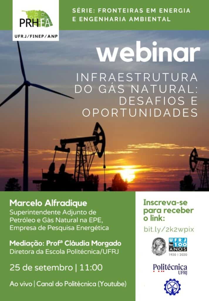 The webinar “Natural Gas Infrastructure: Challenges and Opportunities” will be live-streamed on the YouTube channel of the Polytechnic School at UFRJ and will be moderated by Prof. Cláudia Morgado, director of the Polytechnic School.