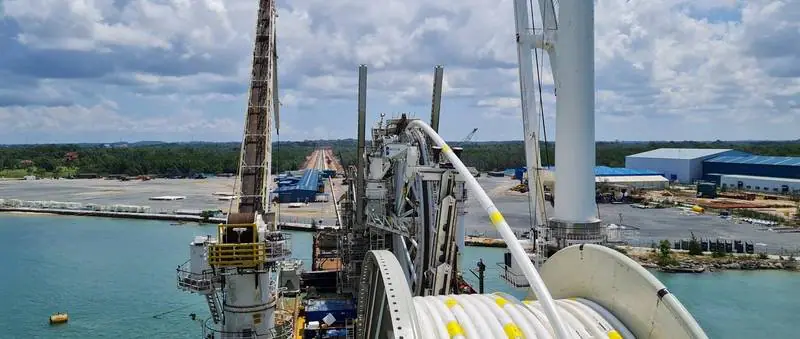 In 2021, as part of Phase 2 development, Woodside Energy and Subsea 7 delivered what was believed to be the largest diameter corrosion-resistant Alloy (CRA) piping ever ‘wrapped’ around a spool. The project involved the installation of 22 km of an 18-inch CRA coated gas transmission flowline.