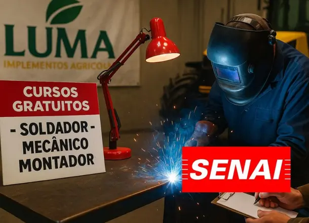 Enrollment is open for two new free SENAI courses offered by Luma Implementos Agrícolas, in partnership with SENAI Mogi Guaçu. The training is aimed at the areas of Welder and Agricultural Machinery Assembly Mechanic, and takes place in person at the company headquarters in Itapira, São Paulo state.