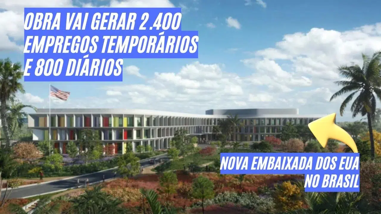 A construção da nova embaixada dos Estados Unidos no Brasil deve gerar cerca de 2.400 empregos temporários e 800 posições diárias no pico das obras, impulsionando a economia local. (Imagem: Reprodução)