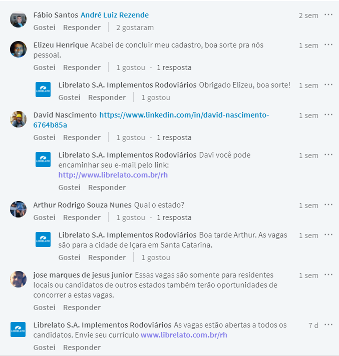To apply for the positions described by Librelato, you will need to access THE COMPANY’S OFFICIAL WEBSITE HERE, fill out the online application form, so please do this on a computer. There is also a second option, which is to call Juliene from Human Resources at the phone number 48 – 34672280. The third option is to send an email to juliane.leopoldo@librelato.com.br, requesting more information about the openings. You can check the source and the official post from the company here. For more updated vacancies in this sector and others, visit the jobs section of this blog.