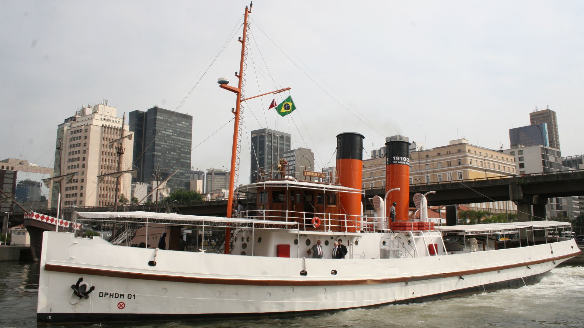 The Laurindo Pitta tugboat was commissioned by the Brazilian Navy from the British shipyard Vickers, Sons & Maxim, Ltd., based in Barrow-in-Furness, England. With a length of 39 meters and a displacement capacity of up to 514 tons, the vessel was delivered to the Brazilian government in September 1910.