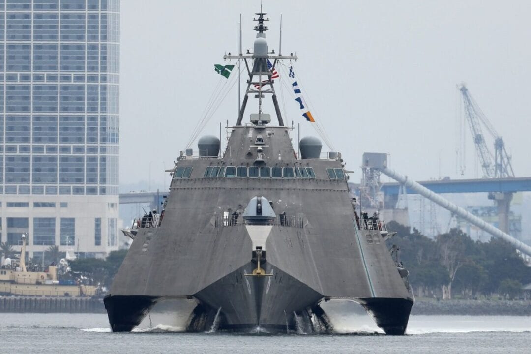 One of the most striking features of the Independence class is its ultra-futuristic design. With a trimaran hull, this ship consists of a central structure and two narrow side hulls to enhance stability.