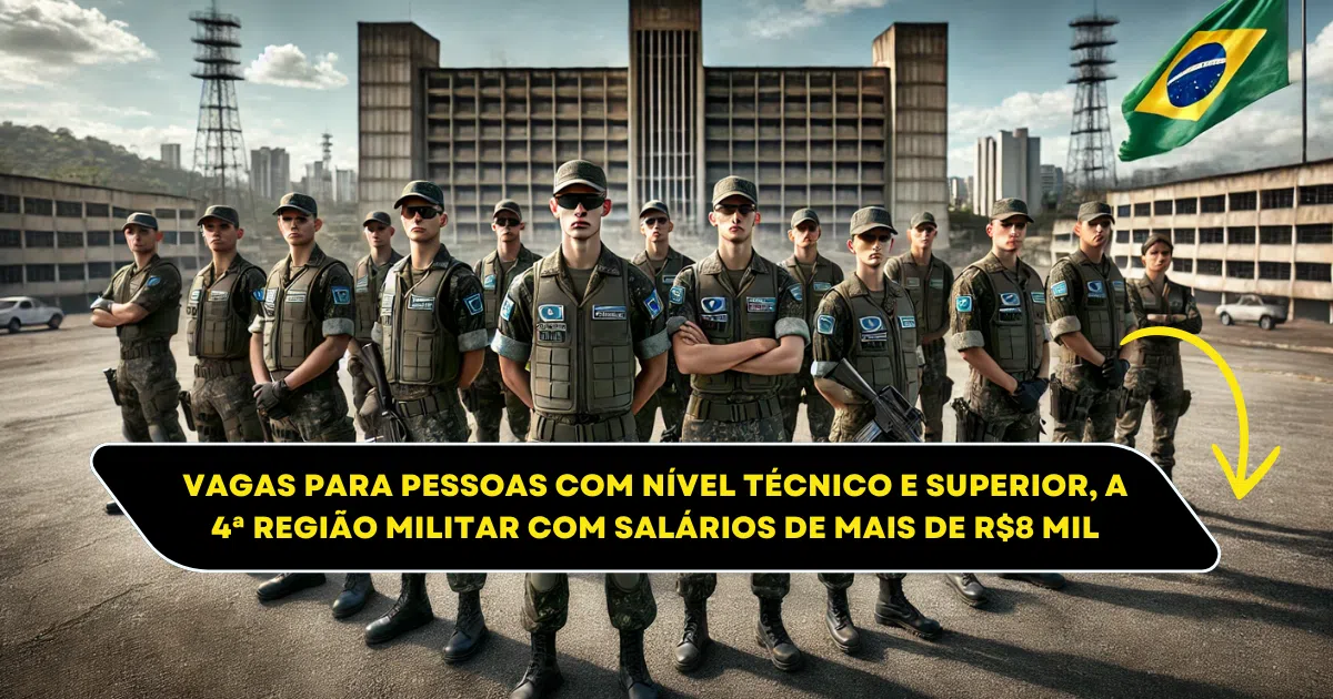 With Job Openings for Doctors and Technicians, the 4th Military Region of the Brazilian Army Offers a Unique Opportunity for Those Seeking Experience and Financial Stability in Public Service. Salaries of Up to R$ 8,245.00. Join and Contribute to the Security and Health of the Country!