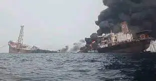 The oil tanker was still on fire on Thursday night, said Idris Musa, the general director of the National Oil Spill Detection and Response Agency.