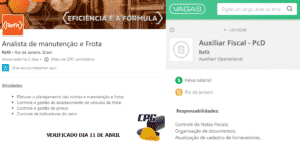 For Rio de Janeiro, the Refit refinery has job openings for professionals with higher education and also for those with a high school diploma. One of the positions is designated for people with disabilities. Also, see: