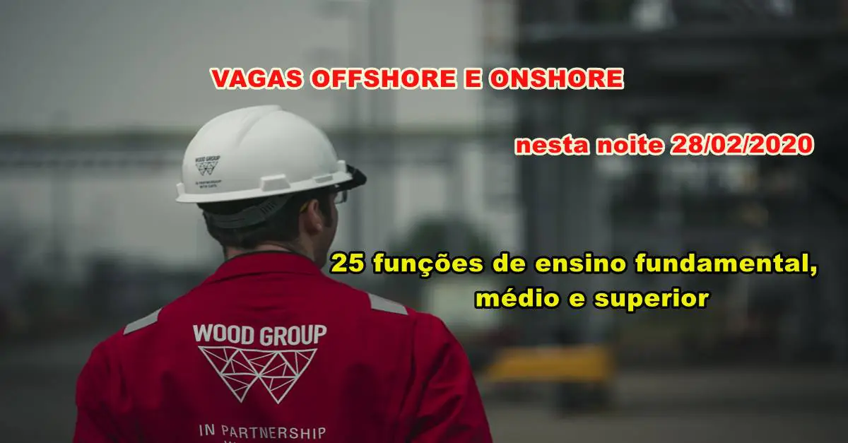 The oil and gas giant Wood Group has announced a resume registration to fill many offshore and onshore job positions under a new operation and maintenance contract. This time, the opportunities are for various levels of education, including elementary, secondary, and higher education. Powerful selection process with 105 offshore job openings has just been released on this day 28, at the Brazilian drilling company
