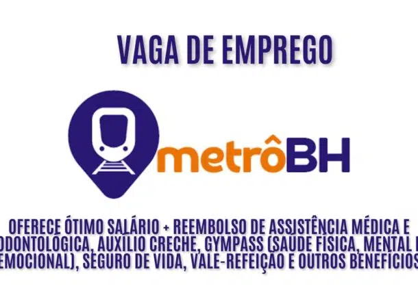 O Metrô BH anuncia vaga de emprego para agente de manutenção energia; Oferece ótimo salário + Reembolso de assistência médica e odontológica, Auxílio creche, Gympass (saúde física, mental e emocional), Seguro de vida, Vale-refeição e outros benefícios; Veja como garantir a vaga