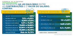 People with an income of one minimum wage will have a lower contribution than currently: instead of 8% on the salary, the rate will be 7.5%. For workers with signed contracts who earn more than one salary, the proposal rates will be progressive, reaching a maximum of 14%.